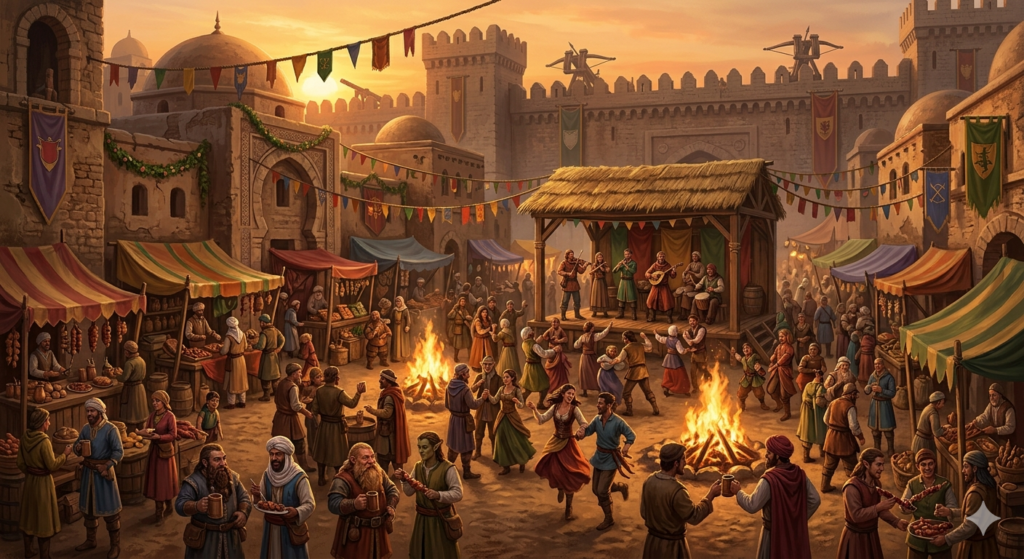 Après un long voyage, les aventuriers se posent à Memnon pendant la fête du printemps. Beaucoup de monde est attendu et il y a un gros programme pour la fête au village.