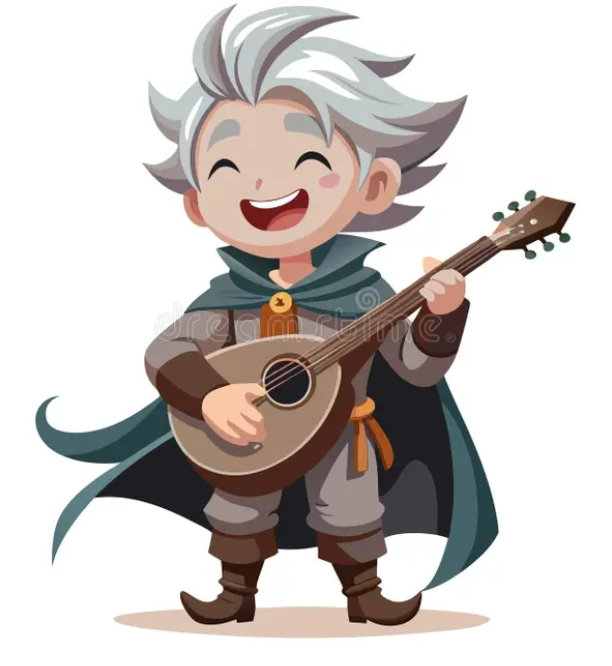 Voici Raphsody le Barde. Il voyage de taverne en taverne pour conter des histoires et chanter des légendes. Malheureusement, malgré sa passion évidente, il possède le charisme d’une huître. Sa voix manque d’assurance, son regard se perd dans la salle, et ses débuts de chanson passent rarement inaperçus… mais jamais pour les bonnes raisons.