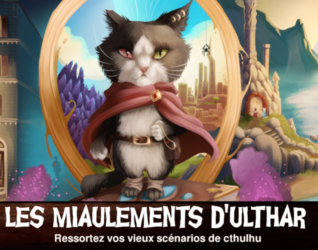 Du pulp, du fun ou du sérieux, » Les Miaulements d’Ulthar » est un jeu de rôle où vous incarnez des félins venant de la Contrée du Rêve. Vos chats, nommés les Gardiens d’Ulthar, sont envoyés par la déesse Bast pour enquêter et agir contre les intrusions du mythe de Lovecraft dans le monde réel ou celui de la Contrée du rêve. Ils possèdent des pouvoirs mystiques qui leur permettent d’agir malgré leur taille et leur fragilité.