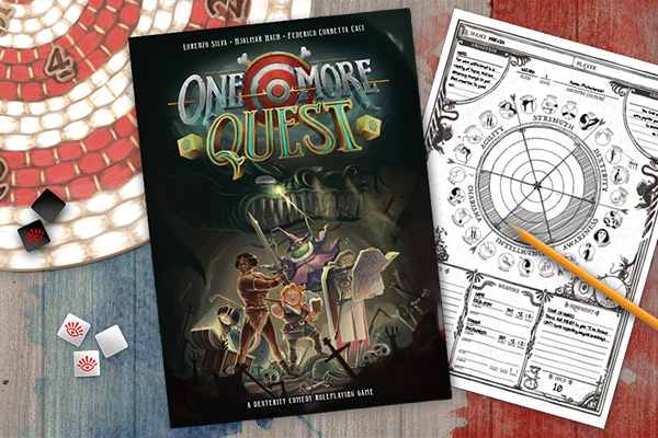 One More Quest est un jeu de rôle comique, un jeu d’exploration de donjons où l’on ne lance pas les dés… on les jette sur une cible !